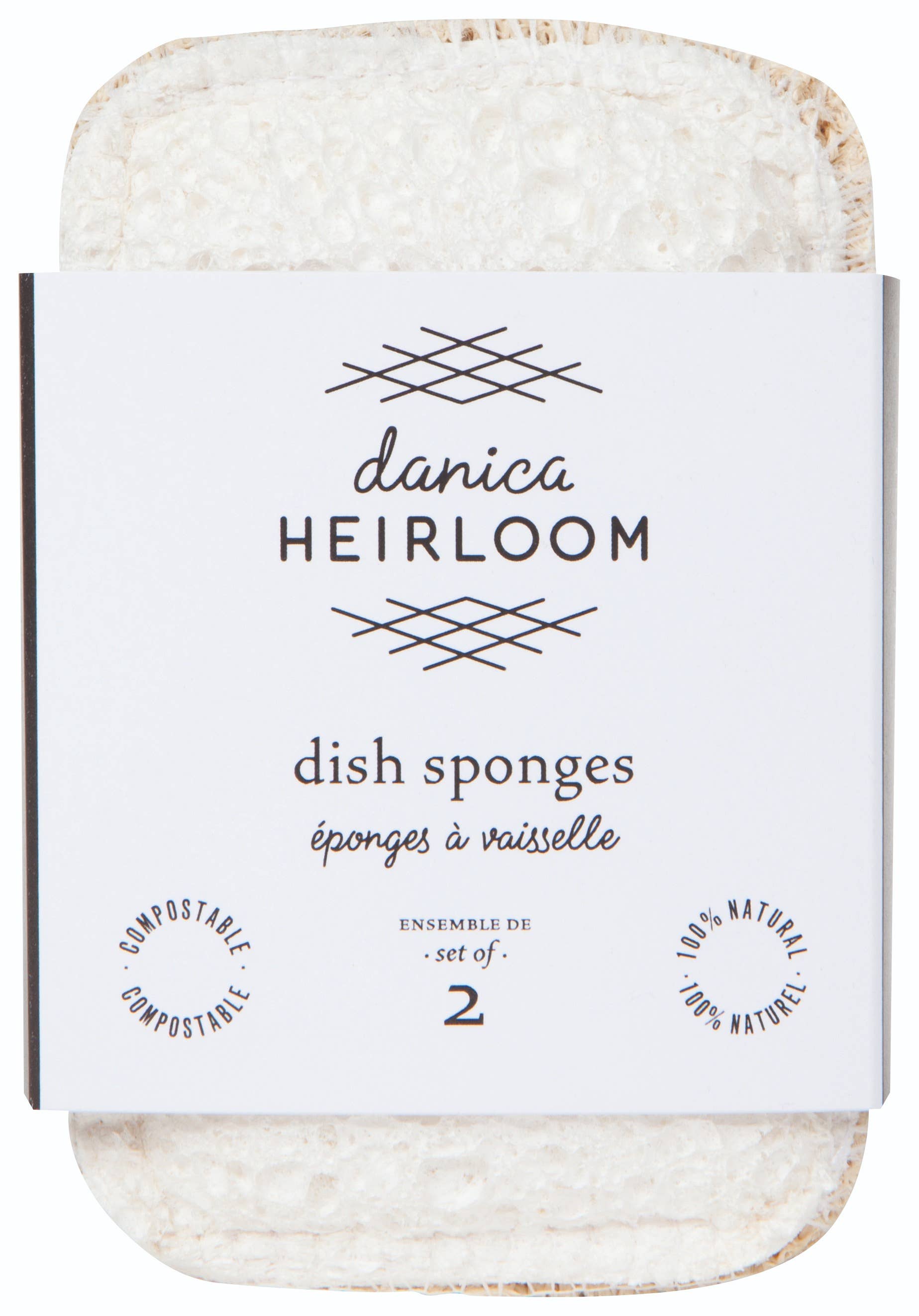 Set of 2 all-natural cellulose, loofah and cotton mesh sponges. They are compostable, biodegradeable, 100% Plastic free and can be cleaned in the dishwasher or washing machine. • SIZE: W2.5 x L4.25in • MATERIAL CONTENT: 70% Cellulose Fiber and 30% Cotton Fiber • CARE INSTRUCTIONS: Dishwasher Safe. Keep dry when not in use. Keep away from fire.